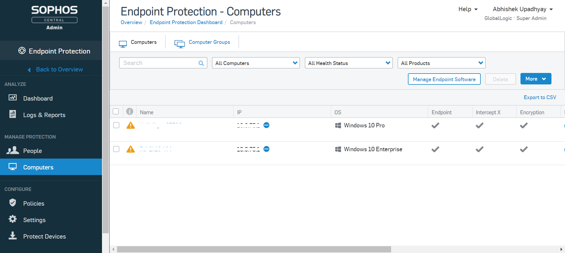 - In the menu on the left, select Endpoint Protection, and then select Computers.