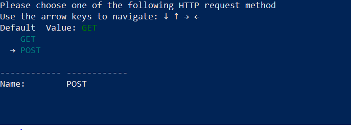 Using the arrow keys, select POST as the HTTP request method, and then press Enter.