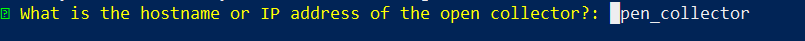 Confirm and re-enter previously configured settings such as the unique identifier, domain, API key, etc. until asked for the hostname or IP address of the Open Collector.