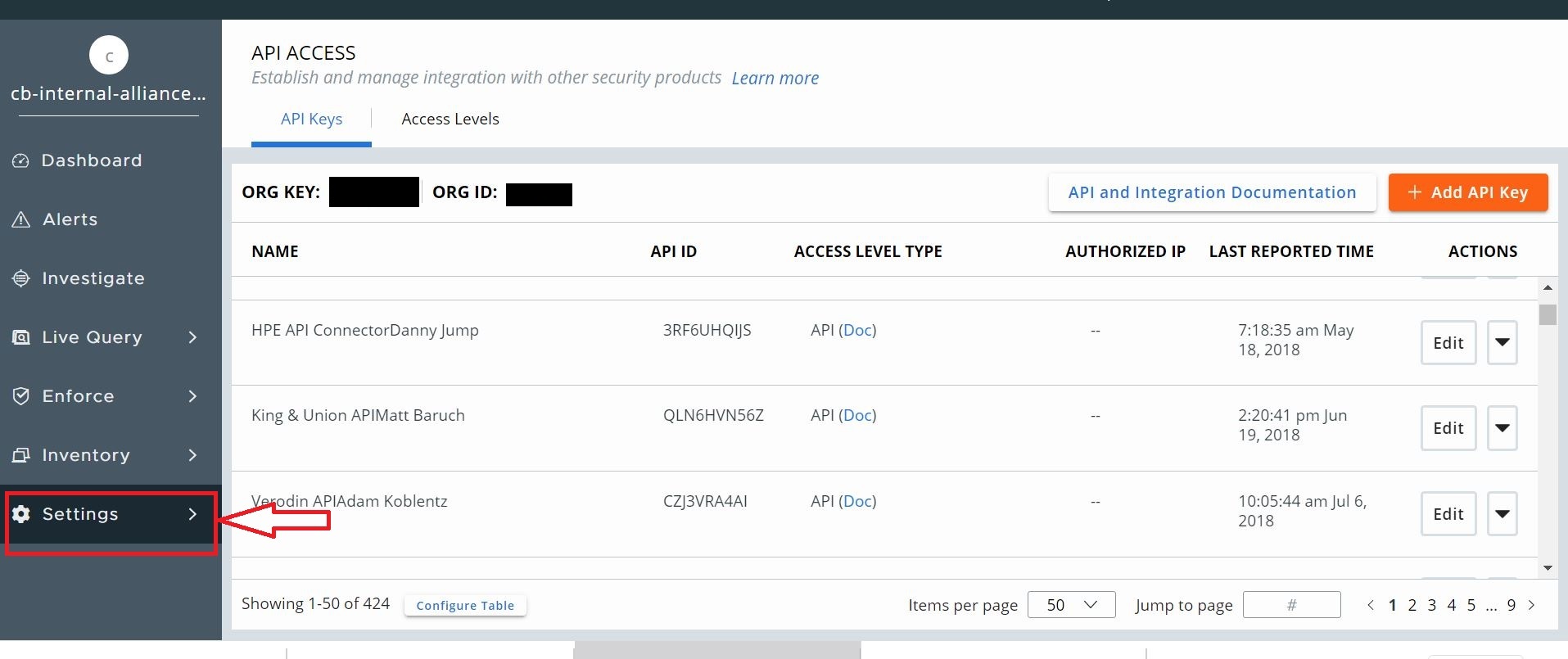 This section will take you through the configuration steps to configure API Access on the Carbon Black Cloud console to get alert logs on Carbon Black Cloud Beat.