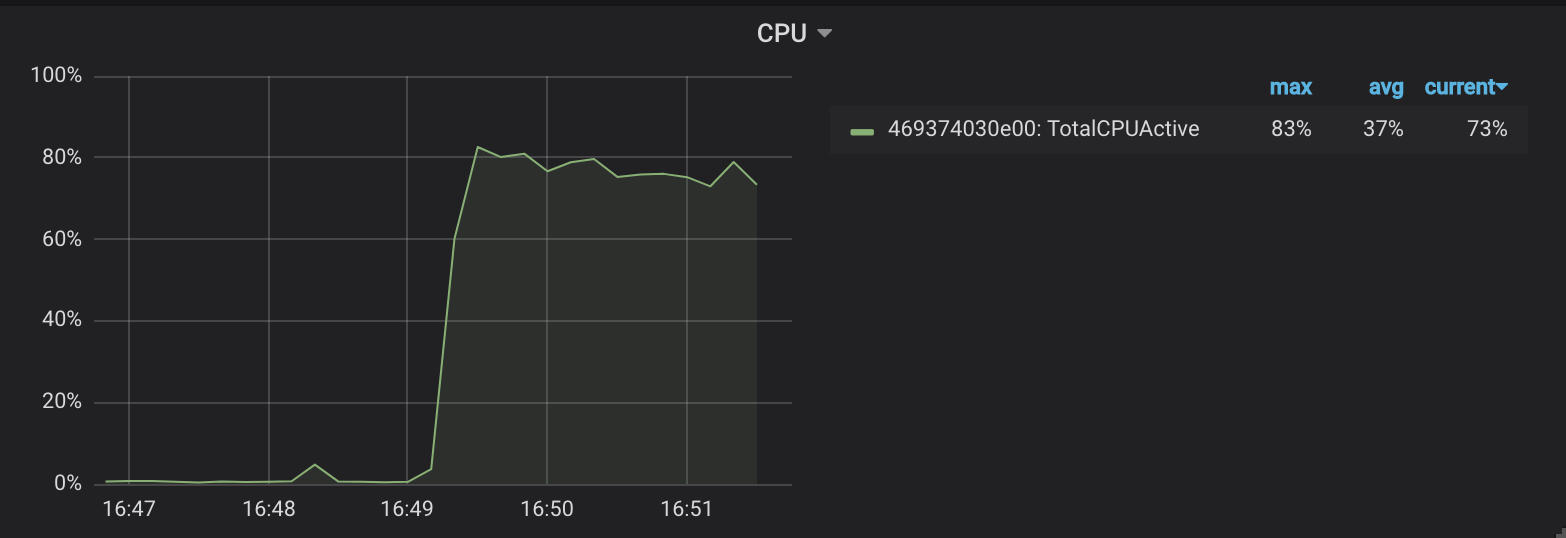 In the image above, channel lengths no longer plateau, but performance gain is marginal. This may be because system resources have been exhausted, as verified in the image of CPU utilization below: