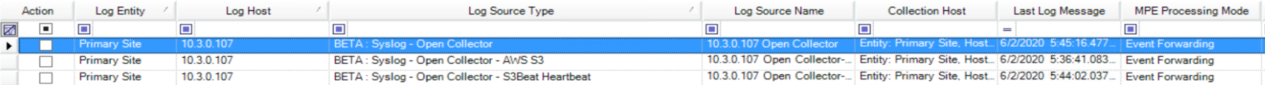 The Open Collector sends the output of every Beat to the Agent in a single syslog stream. The parent log source is a generic type: "Syslog - Open Collector." A log source virtualization template included with the LogRhythm Knowledge Base (KB) creates child log sources for each beat.