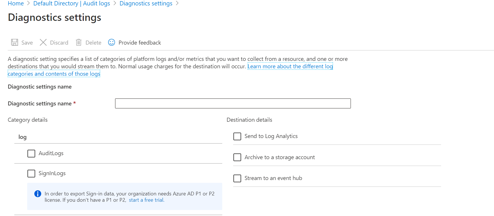 - Type a name for the diagnostic setting.