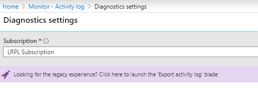- (Optional) If the resource offers you the option to view the legacy experience, select it to disable legacy collection of activity logs. Otherwise, you will have duplication of data.
