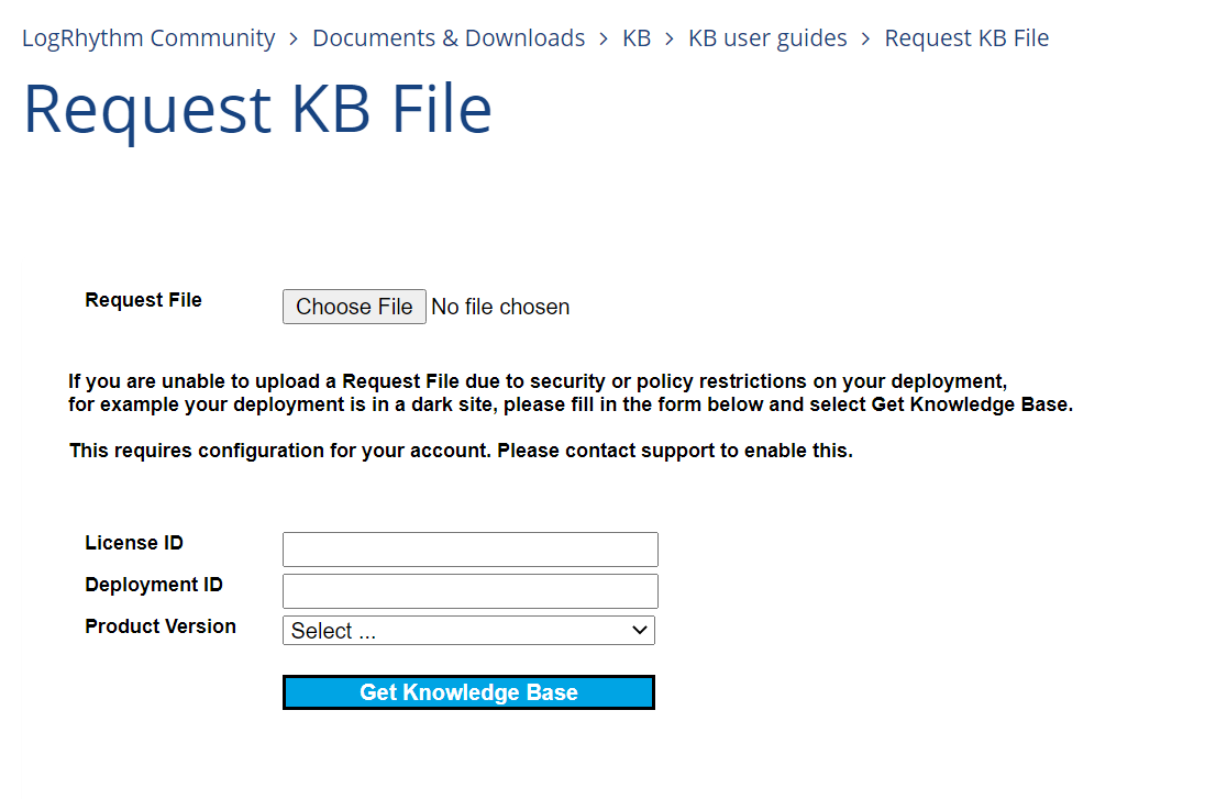 - Click Knowledge Base Request Form, and then select Request KB File.