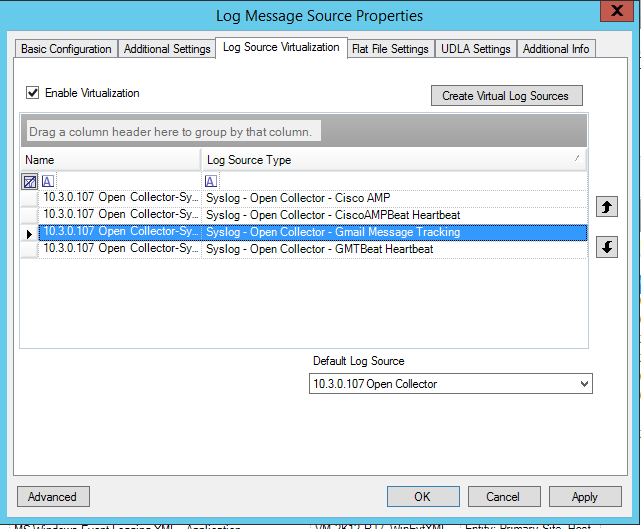 The Log Message Source Properties window appears.Click the Log Source Virtualization tab.