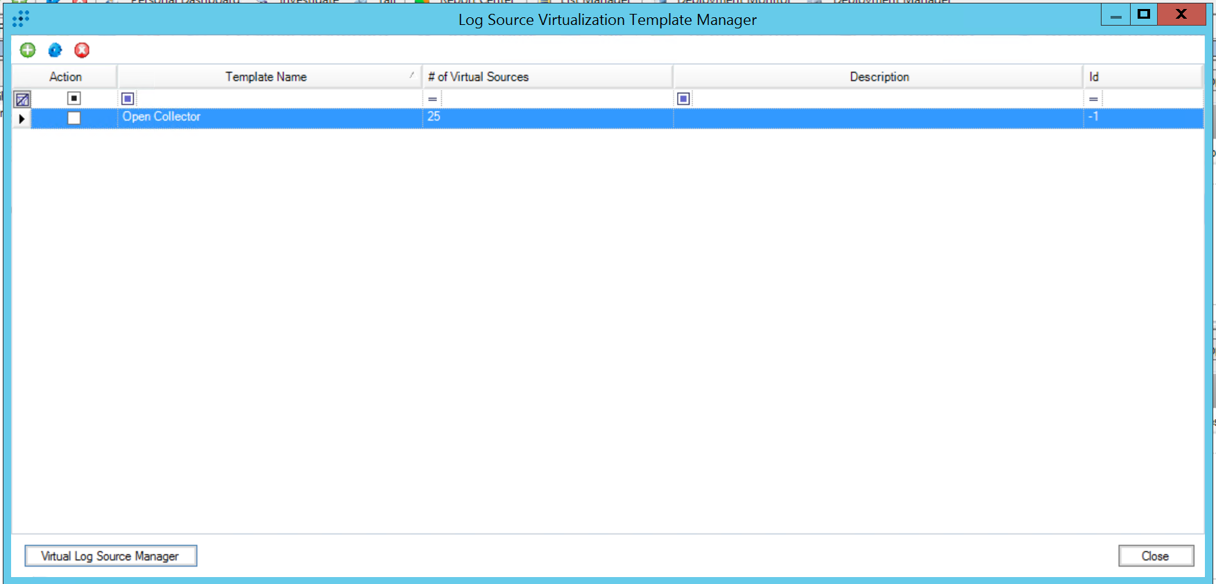Verify the Open Collector template is already there in the Log Source Virtualization Template Manager, and verify the number of virtual log sources.