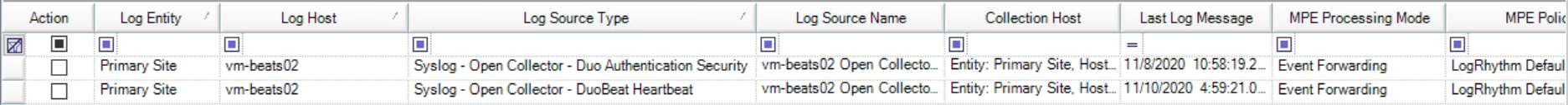 For Duo Authentication Security Virtual Log Sources, verify the following log sources are on the list:- Syslog - Open Collector - Duo Authentication Security