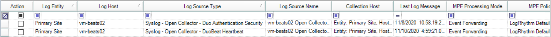 The Open Collector sends the output of every Beat to the Agent in a single syslog stream. The parent log source is a generic type: "Syslog - Open Collector." A log source virtualization template included with the LogRhythm Knowledge Base (KB) creates child log sources for each beat.