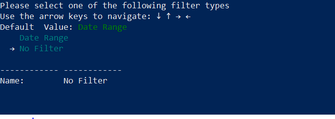 - Using the arrow keys, select No Filter as the filter type, and then press Enter.
