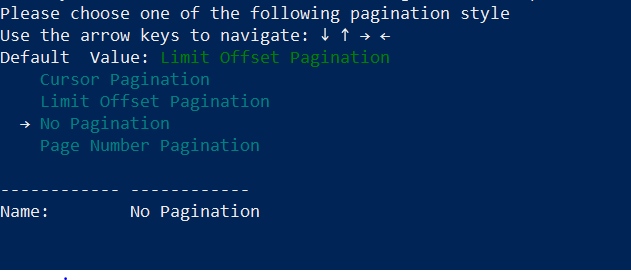 - Using the arrow keys, select No Pagination as the pagination style, and then press Enter.