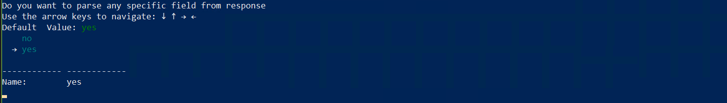 - To parse any specific field from the response (for example, if the API response contains logs in a specific field), select yes using the arrow keys and then press Enter.