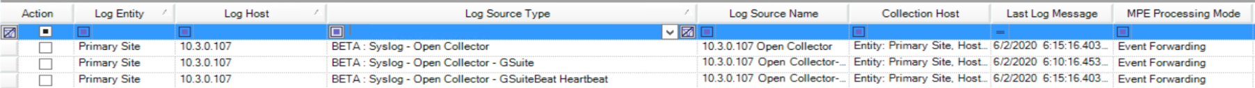 Double-click a child log source—for example, Syslog - Open Collector - Google Workspace.