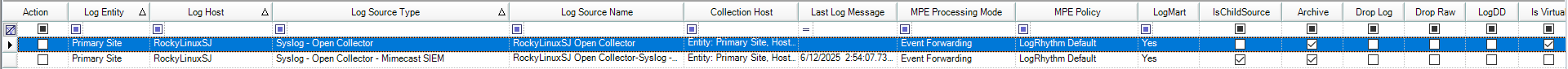 The Open Collector sends the output of every beat to the Agent in a single syslog stream. The parent log source is a generic type: "Syslog - Open Collector." A log source virtualization template included with the LogRhythm Knowledge Base (KB) creates child log sources for each beat.