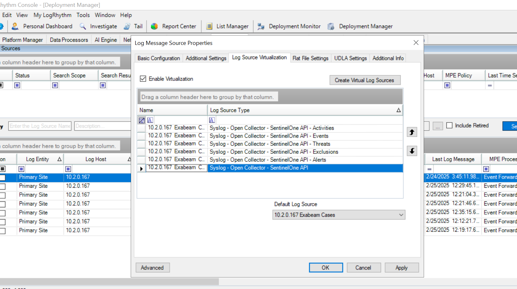 The Log Message Source Properties window appears.Click the Log Source Virtualization tab.