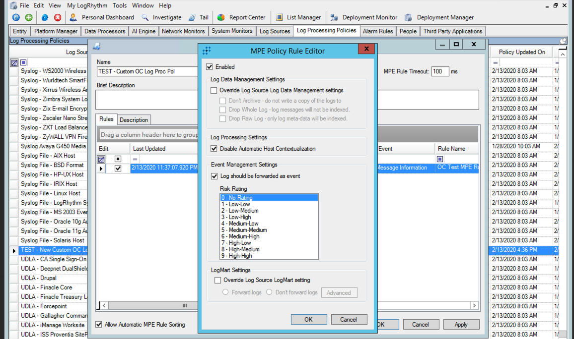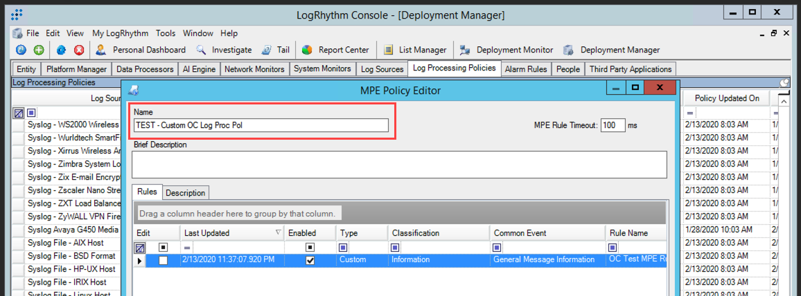 - Click the Log Processing Policies tab.