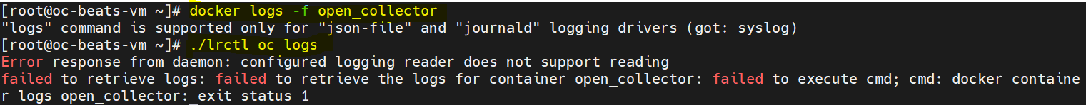 All docker container logs of an Open Collector deployment can be sent to a syslog server using a syslog logging driver. To use the syslog driver as the default logging driver, perform the following steps: