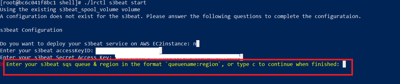 Enter your s3beat sqs queue and region in the format queuename:region. You can configure multiple queuename and region combinations.