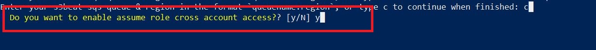 - If you want to enable cross-account access of some objects, type y. Otherwise, press Enter and go to the next numbered step.