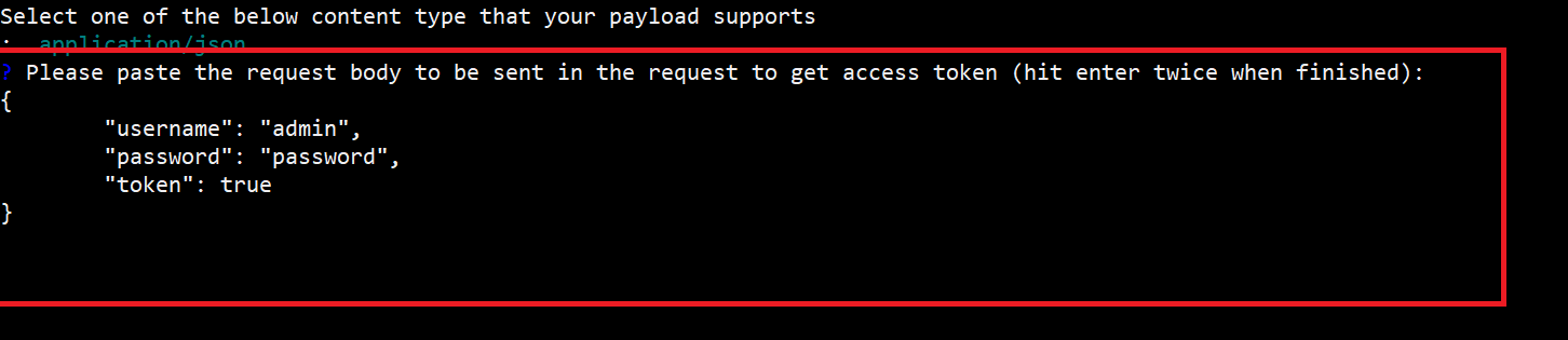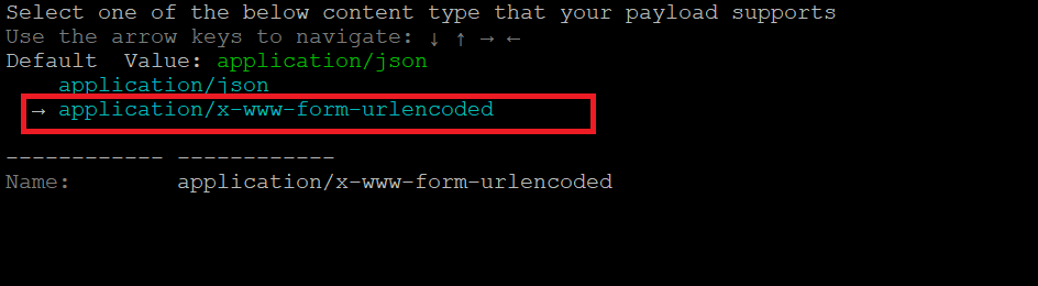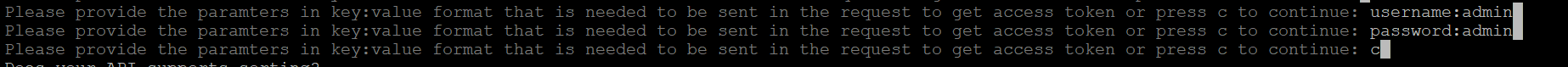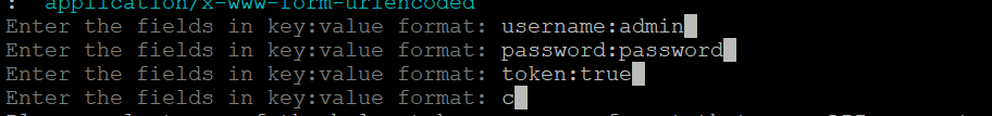 - Enter the request body in the key:value format, and then press 'c' to continue.