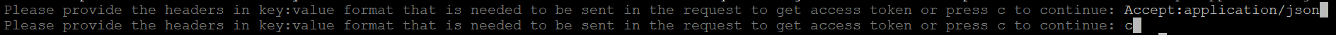 - Enter the request headers (other than the authentication header) in the “key:value” format, and then press 'c' to continue.