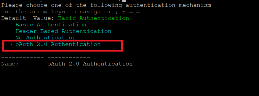 - Select the Basic Authentication mechanism using the arrow keys, and then press Enter.