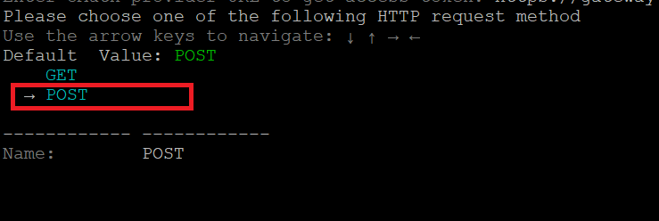 - Select GET as the HTTP request method using the arrow keys, and then press Enter.