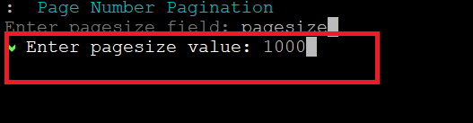 - Enter the page size value supported by the API, and then press Enter.