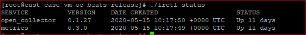 CODE./lrctl statusYou should see the open_collector and metrics as shown in the following graphic: