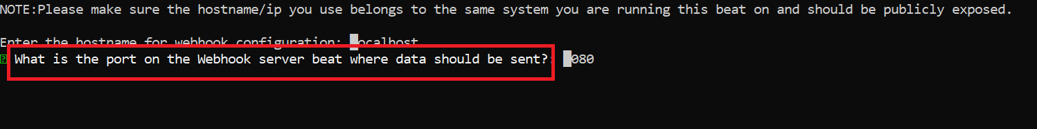 Enter the port on which you want to run the webhook beat. The default port is 8080.