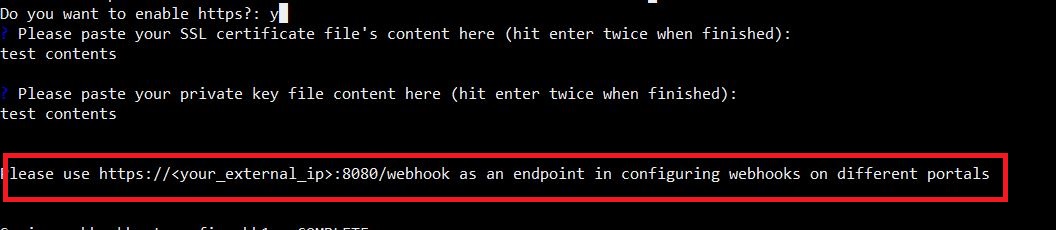 To enable https in your webhook callback URL , enter y, otherwise n or simply Enter.