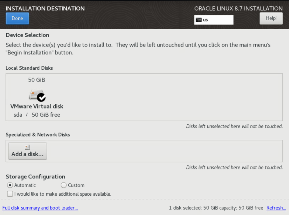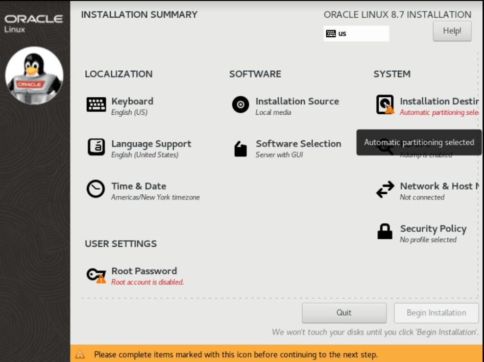 Oracle Linux 8.7 Installation Setup