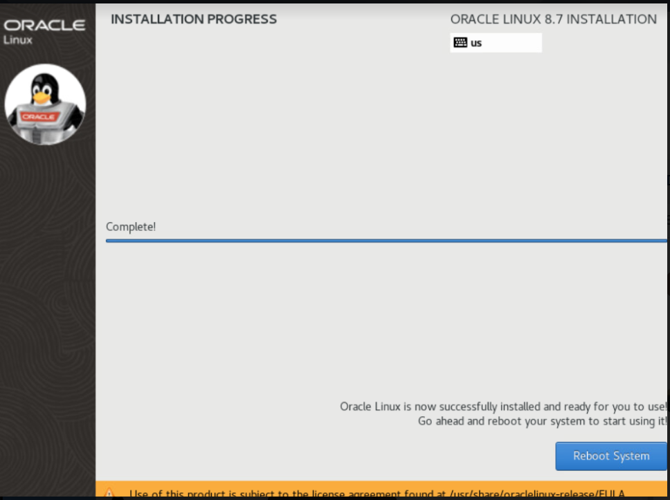 - Once the installation is completed, click on Reboot System at the bottom-right corner.