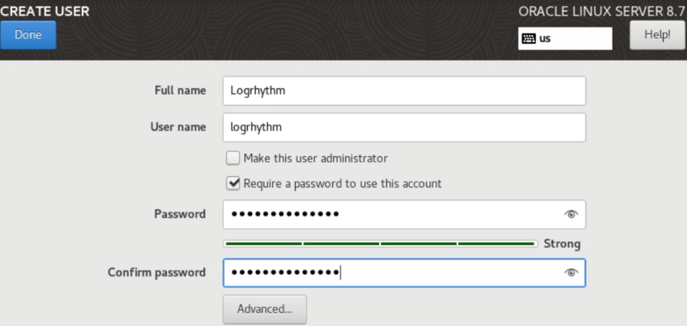 Create a logrhythm user with a strong password.
