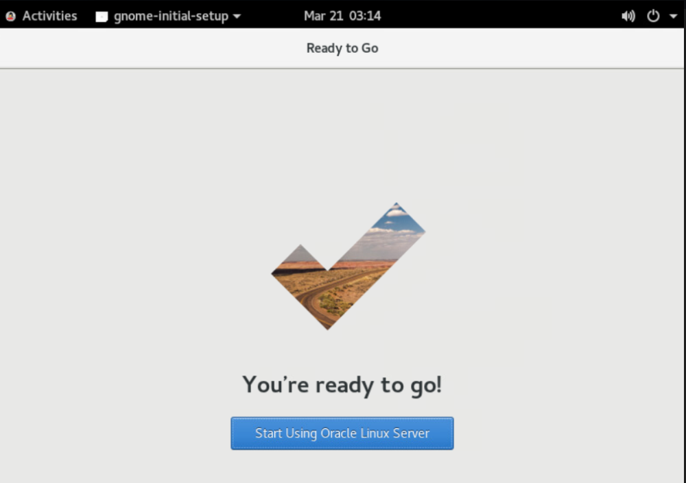 The Ready to Go window appears. Click the Start Using Oracle Linux Server button.