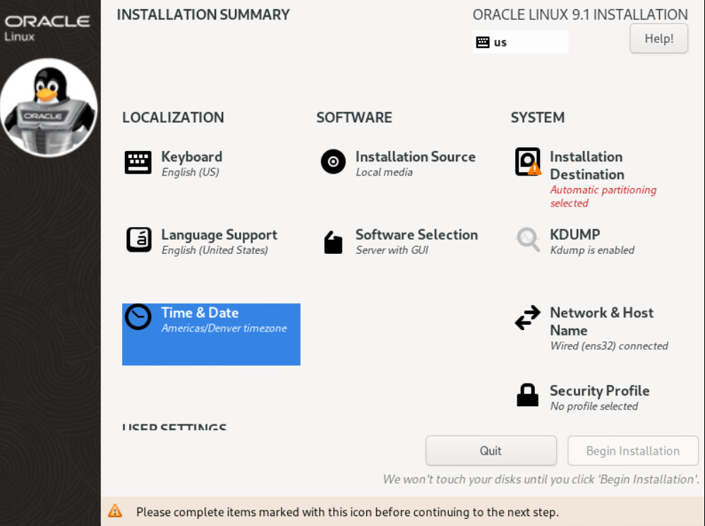 The Installation Summary screen appears. - In the Localization section, click Date & Time.