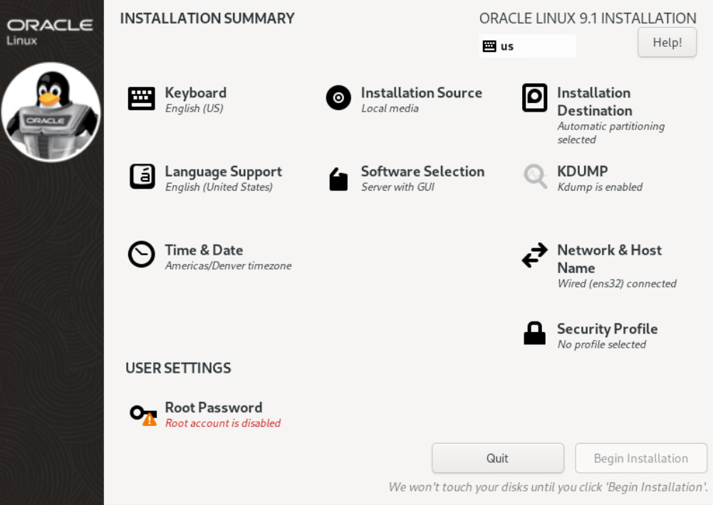 The Installation Summary screen appears. - In the bottom-right corner, click Begin Installation.