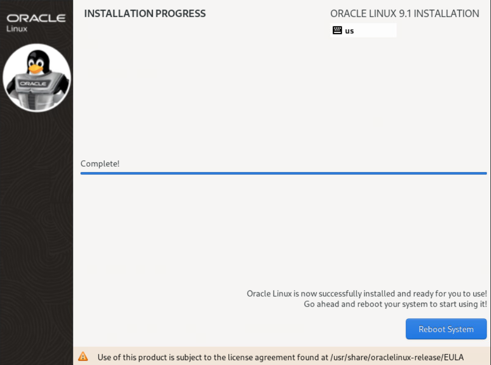 - Once the installation is completed, click on Reboot System at the bottom right corner.