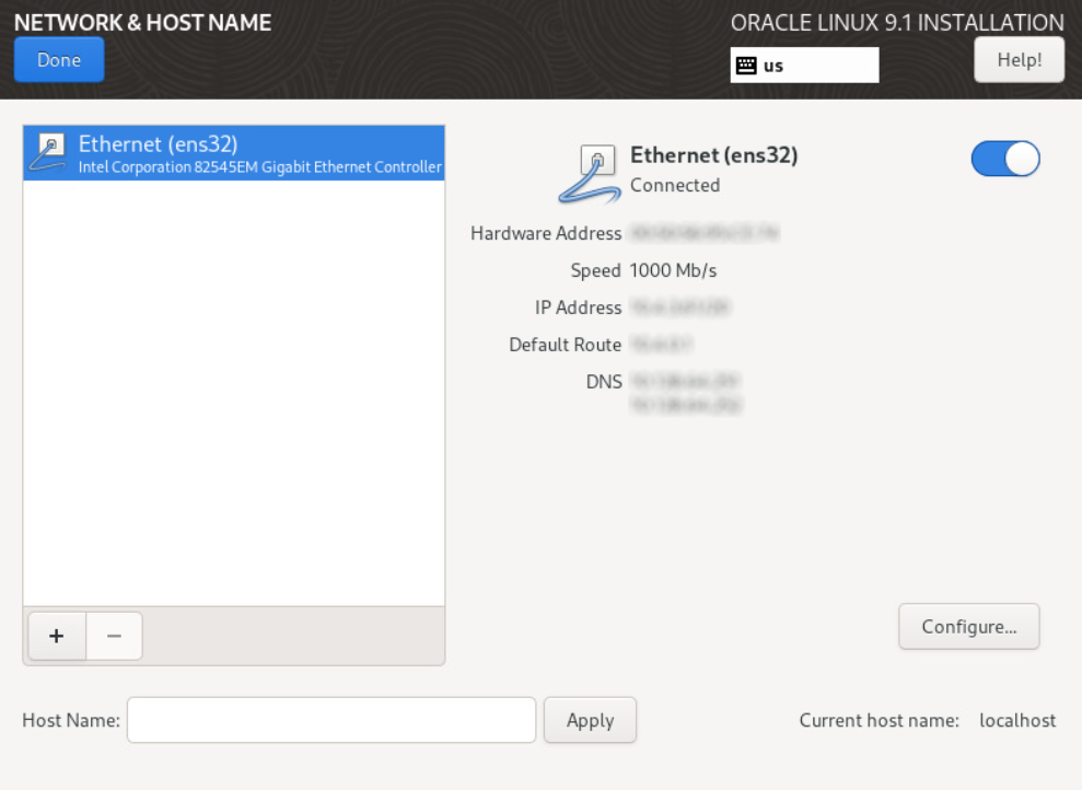 The VM retrieves an IP address and DNS settings using DHCP. - In the upper-left corner, click Done.