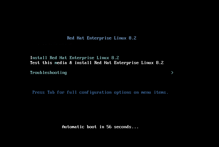 - Select Install Red Hat Enterprise Linux 8.x.