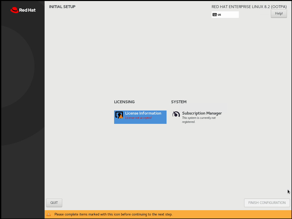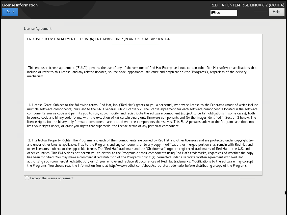 - Once the system is rebooted, you will be required to accept the Red Hat license.