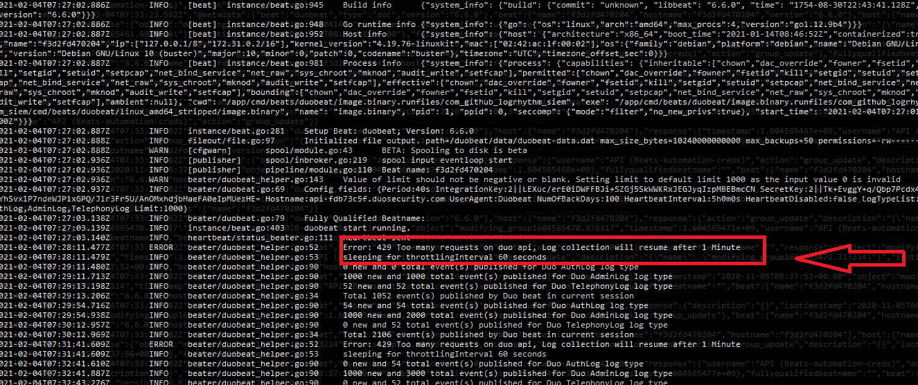 Duo recommends requesting logs once per minute.