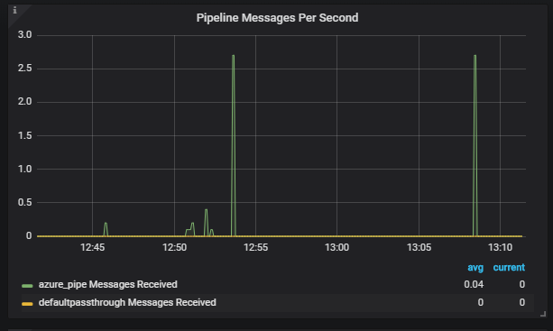 Validation: To ensure that logs match the Azure MDI, open Grafana and look at the Pipeline graphs in the middle column of the default dashboard. For more information, see the View Open Collector Metrics via Grafana topic in the Open Collector Installation and User Guide.- All Azure logs should match