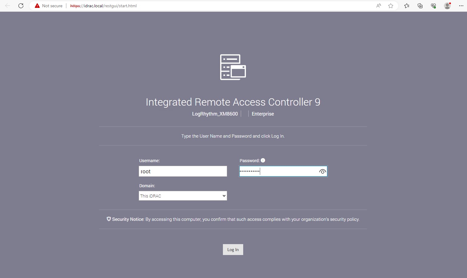 Password: LogRhythm Default Password (obtain from support or professional services if you are unsure)