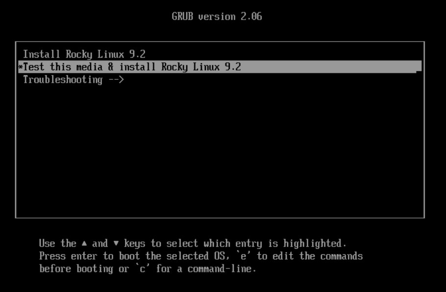 - Select Test this Media & Install Rocky Linux 9.2.