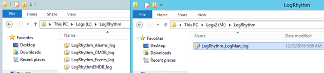 • For the first LR-SA device, the log file for the LogRhythm_LogMart database will be moved to the new logs drive (M:\LogRhythm).