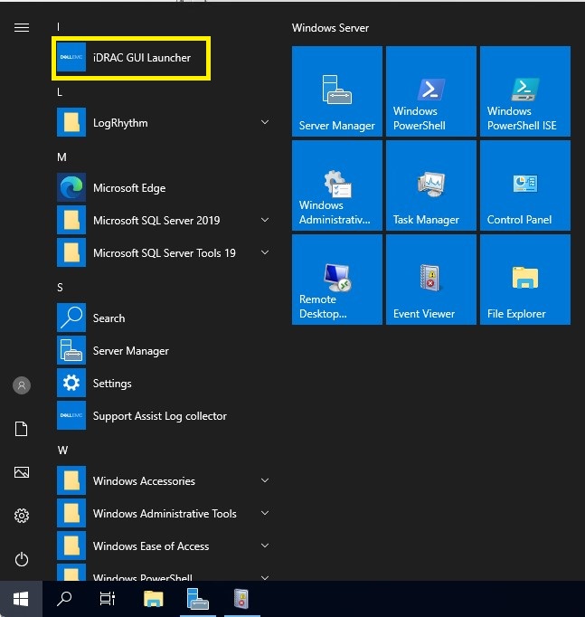 - If accessing the iDRAC from within the LogRhythm appliance you can access this through the Start Menu "iDRAC GUI Launcher". This will open a web browser to the web address of "https://idrac.local/restgui/start.html"