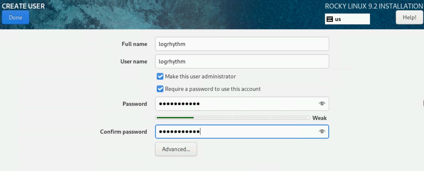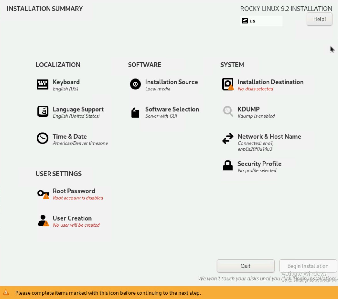 - The Rocky Linux 9/RHEL9 Setup wizard is requires the following input: