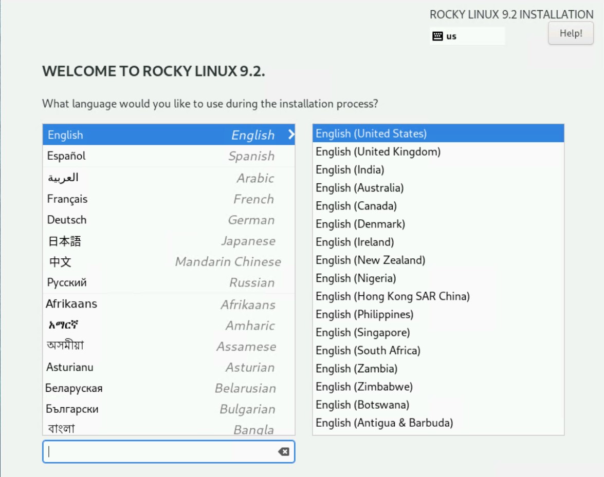 Select your OS Installation Language from the Rocky Linux Installation UI.
