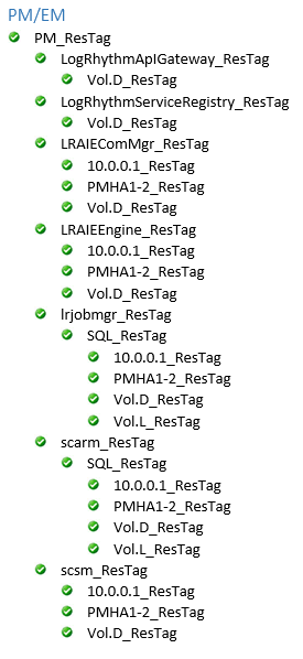 The extended resource hierarchy should look like this with HA1 Active and HA2 on Standby or Mirroring: